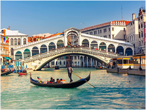 Today we visit one of the most romantic cities of the world – Venice. We board an exclusive boat and ride the length of the Grand canal to reach St. Marks Square. Upon arrival, we watch a Murano glass making demonstration. We then visit St. Mark's Basilica to admire its breathtaking art in mosaic. We explore Venice along winding roads and beautiful bridges, which join the small islands, besides old buildings that seem as if they are floating in the water. We reach Rialto Bridge, the longest marble bridge of its time, and shop for souvenirs and Venetian masks. | ||